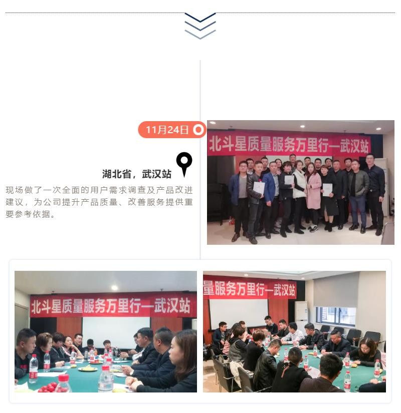 11月19日-12月15日,長達15天的“北斗星質(zhì)量服務萬里行”圓滿結(jié)束,北斗星集成灶制造總監(jiān)沈思恩先生親自帶隊,率領北斗星售后服務、產(chǎn)品研發(fā)、品質(zhì)等部門精英人員一起深入一線,對全國各大銷售戰(zhàn)區(qū)進行回訪。