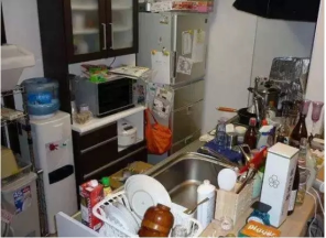 一看到破舊不堪、擺放雜亂的廚房