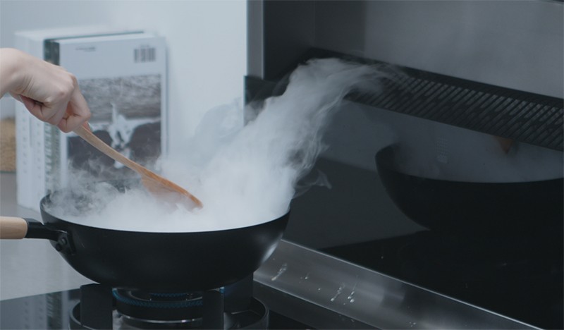 抽油煙機一般是安裝在頭上,是把油煙聚集到頂部。但是,集成灶采用側吸下排的方式,運用微空氣動力學原理,利用下沉空氣施壓形成負壓區(qū),把油煙聚集到底部被吸走。采用這種方式,油煙的吸凈率甚至超過99%。