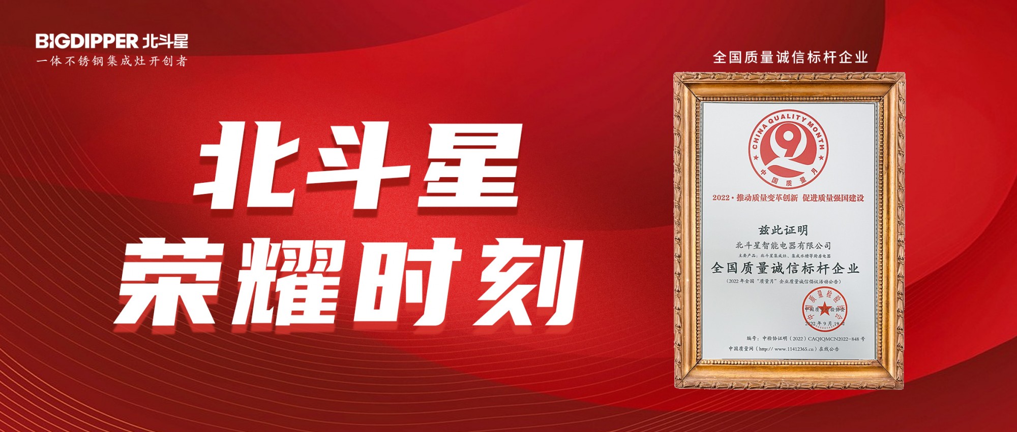 此次北斗星入選 2022 年度中國質量月 " 全國質量誠信標桿 " ,是中國質量檢驗協(xié)會對北斗星集成灶產品和服務的高度認可。