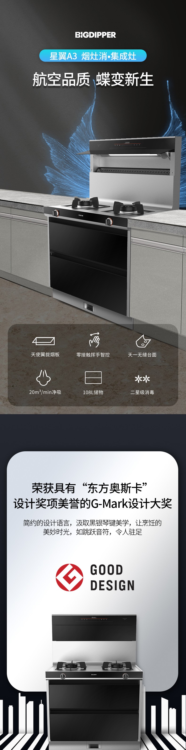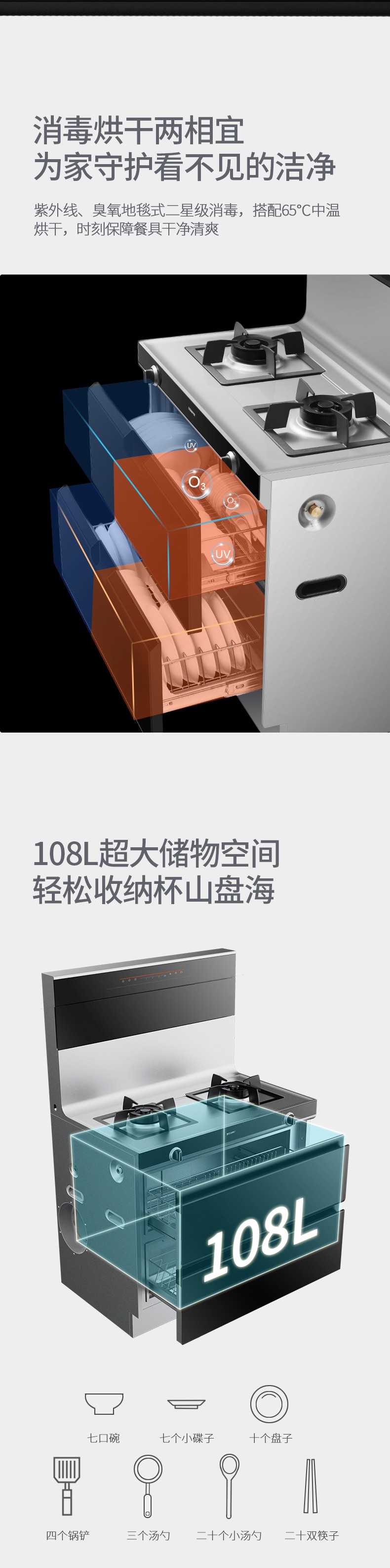 二星級消毒,108L大容量輕松容納杯山盤海