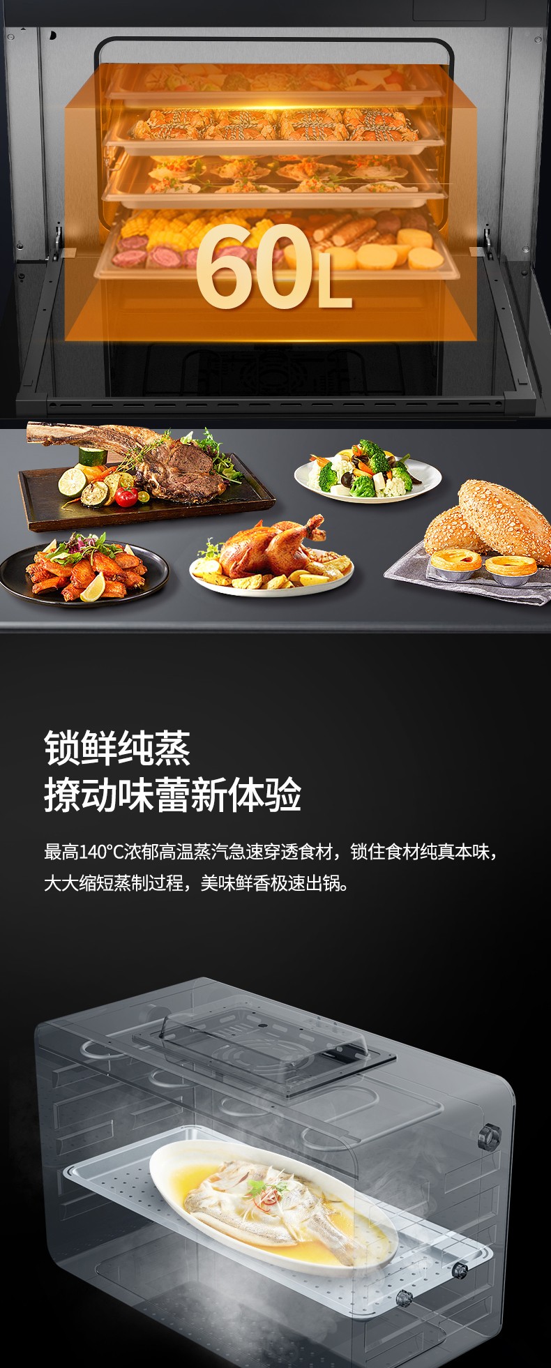60L蒸烤內膽,一聲令下美味到家